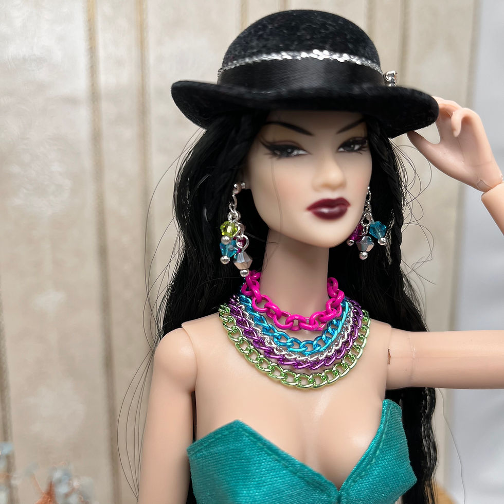 Our selection of beautiful handmade doll jewellery is unique and will add an element of elegance and charm to any fashion doll outfit it completes. We may be able to take on commission orders so why not contact us if there is a design you would like us to create.