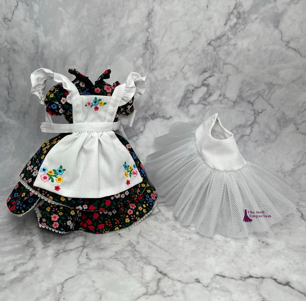 Complete 11-12" Doll Outfit (2024) - 'Black n Gold' Top, Skirt, Shoes, Bag....